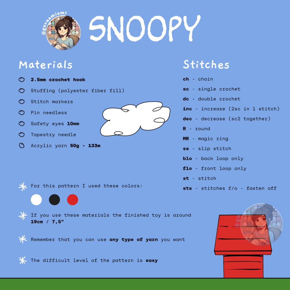 SNOOPY - FREE crochet amigurumi pattern PDF
